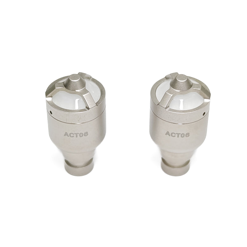 The "ACT06" is equipped with the "Mirinx SS driver", which is based on the Mirinx WS driver used in the ACT03/04, and adjusts and optimizes each parameter of the dynamic driver to match the newly adopted stone baffle plate and nickel silver chamber. Nickel silver, also known as German silver, is an alloy composed of nickel, zinc, and tin. The ACT06 has a higher nickel content than the ACT07, and is tuned to give thickness to the vocal range. While the dynamic driver uses the conventional Mirinx diaphragm, it takes advantage of the characteristics of the stone baffle material made of natural stone to enjoy a smooth, sharp, and hard sound. The ACT06 has a glossy finish on the chamber surface, which brings out the elegant texture of the stone and creates a luxurious feel.